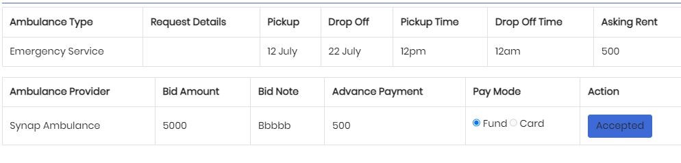 When Ambulance provider accept your request you can see your request on (My Request). Click on my request