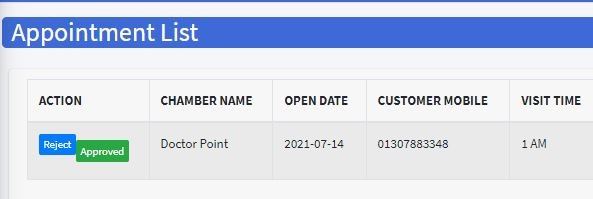 After Approved the patients Appointment Doctor click visited list and press Present option