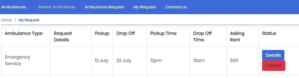 When Ambulance provider accept your request you can see your request on (My Request). Click on my request