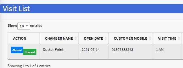 After Approved the patients Appointment Doctor click visited list and press Present option