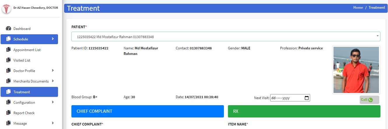After press the Present button Doctor select Treatment option and select the patient & Doing Video call to patients